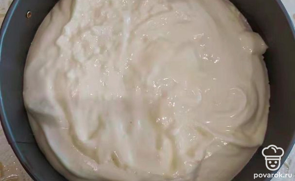 Смешать муку и разрыхлитель, просеять в яичную массу и аккуратно вымесить лопаткой. Не миксером!