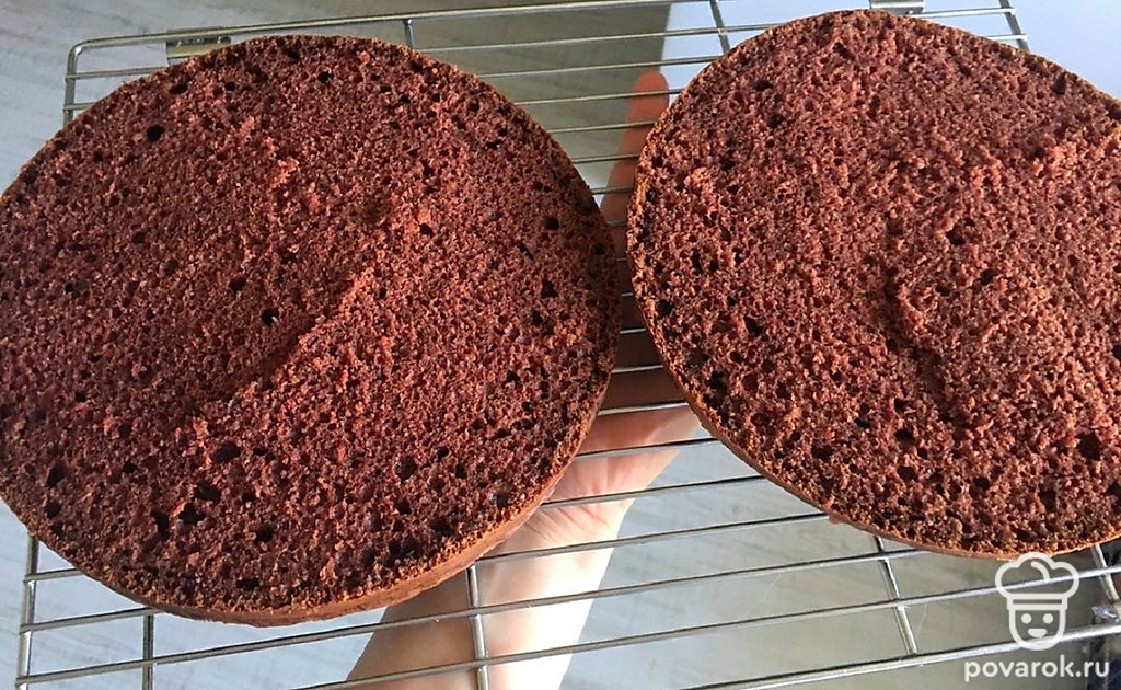 Разрежьте на коржи и используйте для приготовления торта сразу или, завернув в пищевую пленку, на следующий день. Удачных кулинарных шедевров!