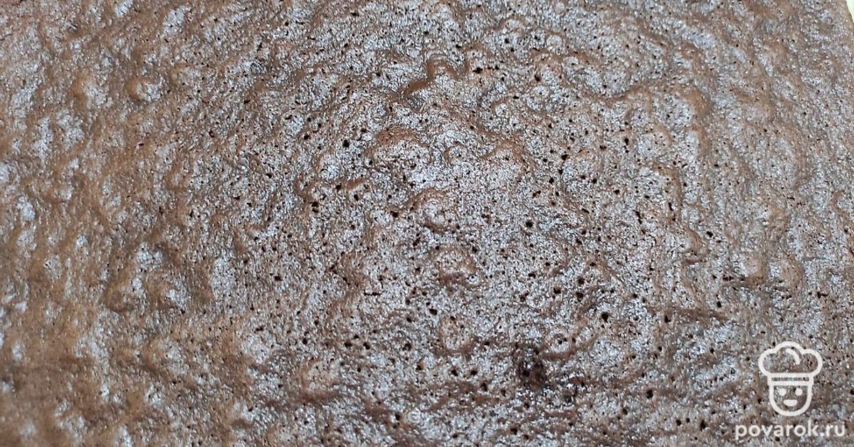 Остывший бисквит завернуть в пищевую плёнку и убрать в холодильник на сутки. Так он станет более влажным и будет легче резаться на коржи.