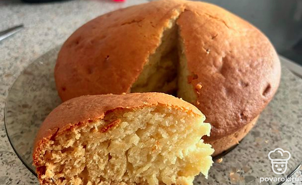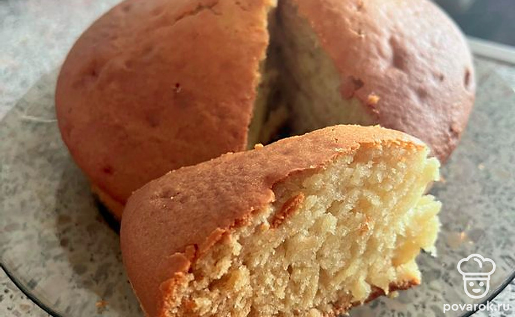 Бисквит получается мягким, пышным и даже не скажешь, что в нем нет яиц. Кефира также не чувствуется.