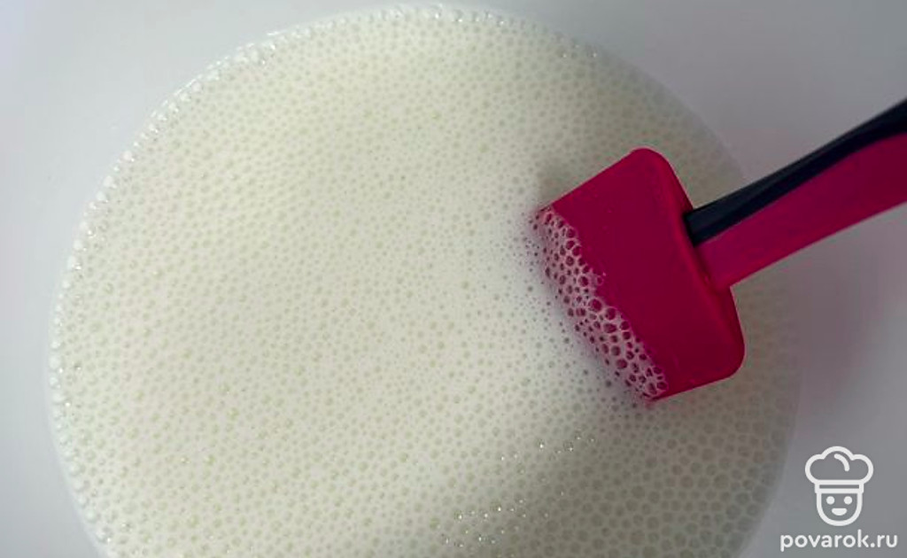 Поставьте духовку разогреваться до 170 градусов. В теплый кефир добавьте соду.
