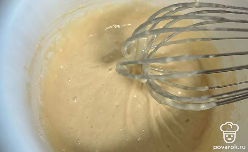 Добавьте масло и начинайте постепенно добавлять муку. Консистенция теста должна быть, как густая сметана.