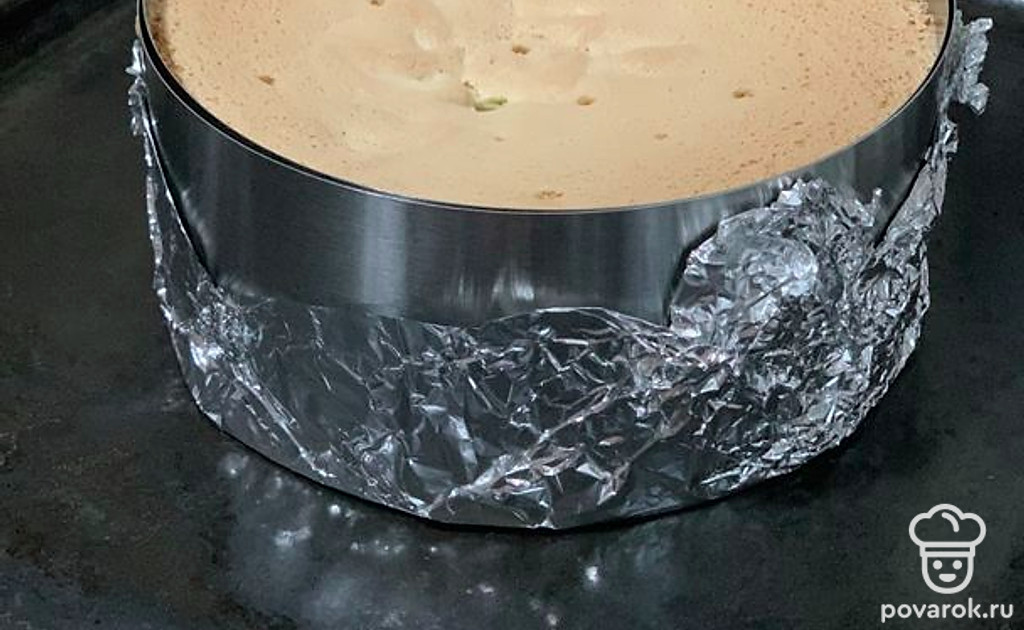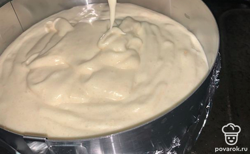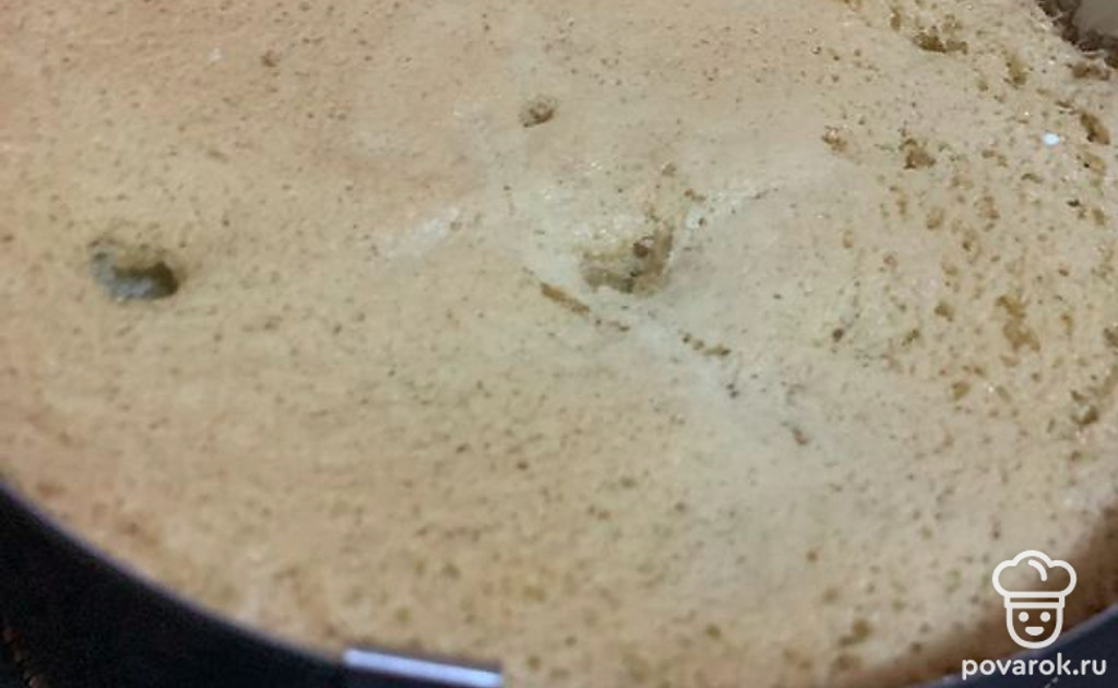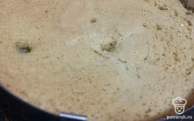Вылить массу в форму и выпекать около часа на 170 градусов, проверять бисквит спичкой.