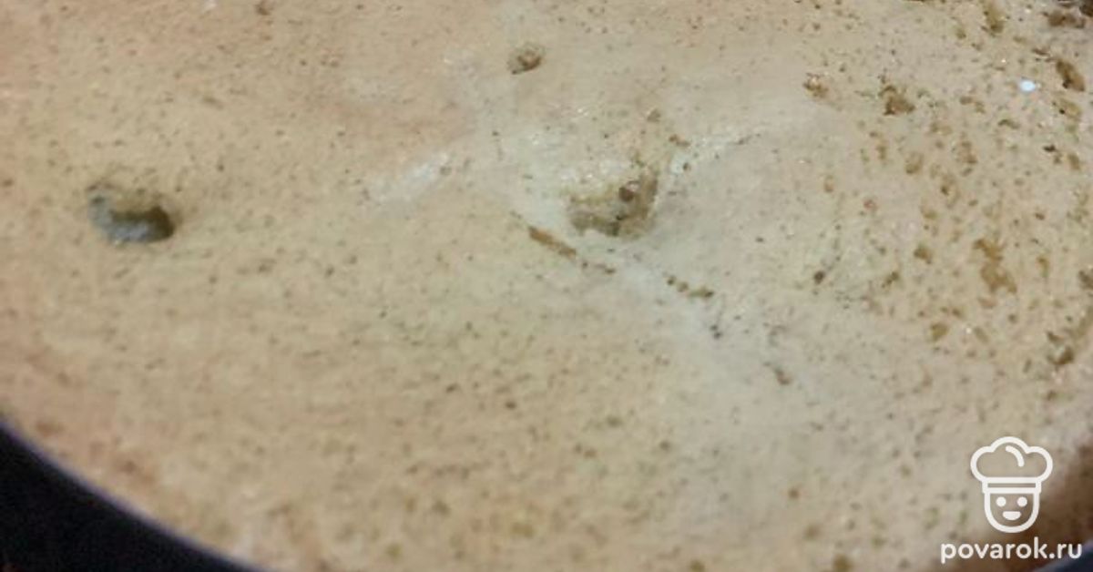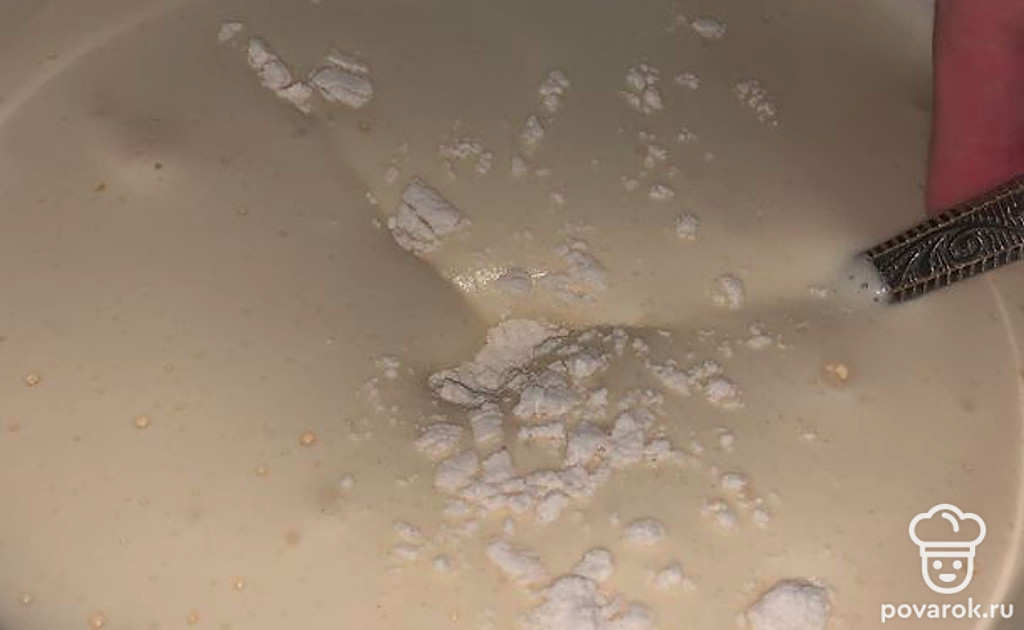 Добавить муку и аккуратно перемешать ложкой снизу вверх.