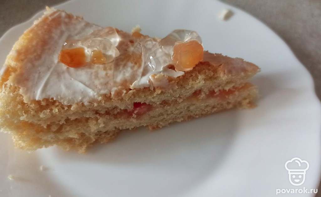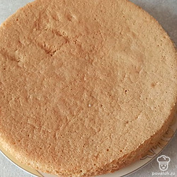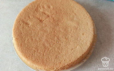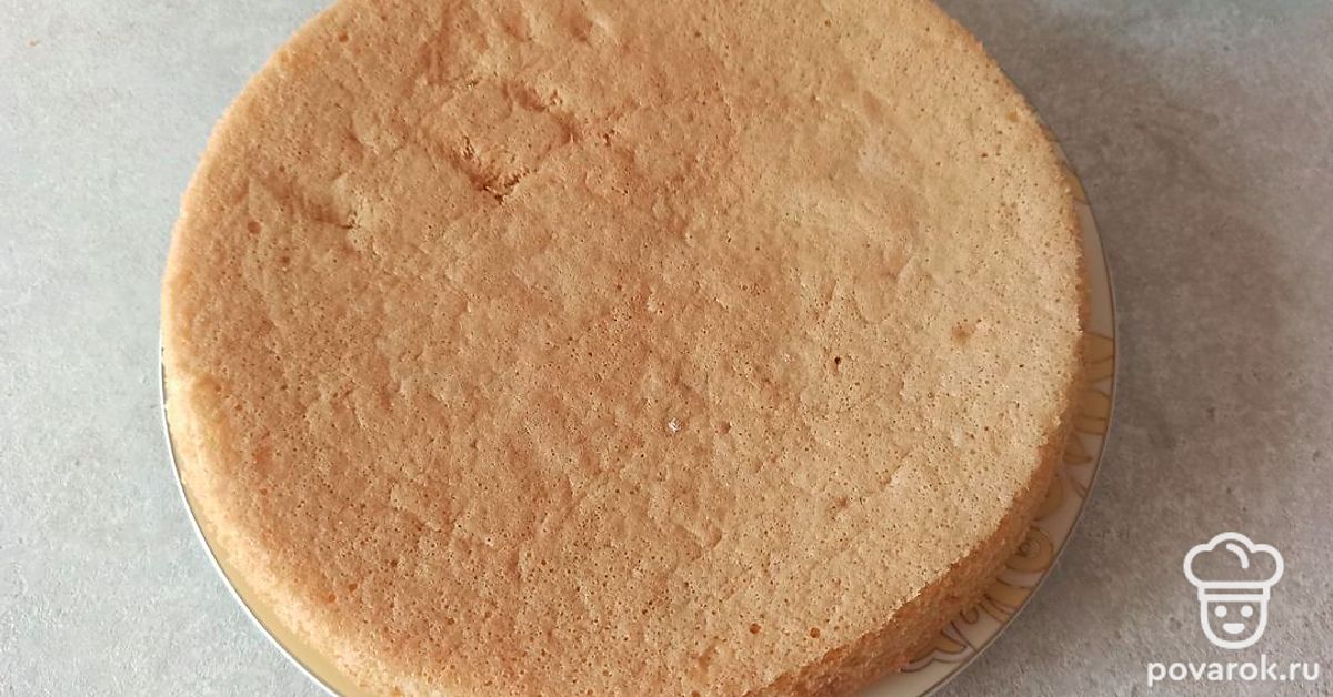Разрезаем бисквит на два коржа и пропитываем кремом.