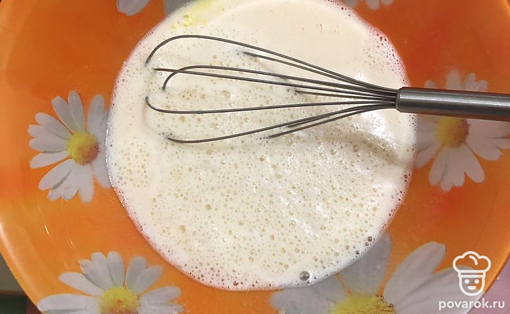 К яйцам добавить кефир и растительное масло, если любите послаще можно добавить сахар.