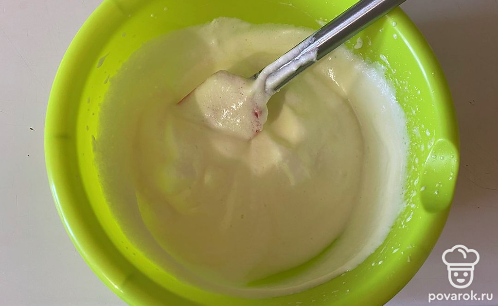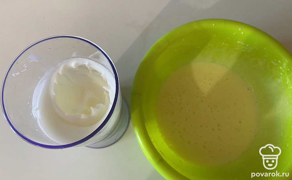 Белки взбейте до пышной пены, а желтки до растворения сахар.