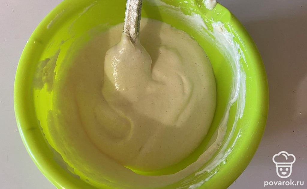Также аккуратно перемешайте лопаткой до исчезновения комочков муки.