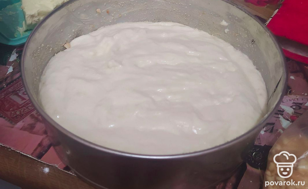 Переложите тесто в форму, немного постучите формой по столу, чтобы все было равномерно. Поставьте выпекаться при 180 °С на 45 минут. Ни в коем случае не открывайте духовку в течение получаса.
