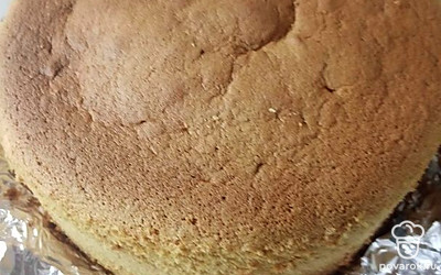 Если вы хотите приготовить торт, то готовьте бисквит за сутки. Готовый остывший бисквит заверните в плёнку и поставьте в холодильник.