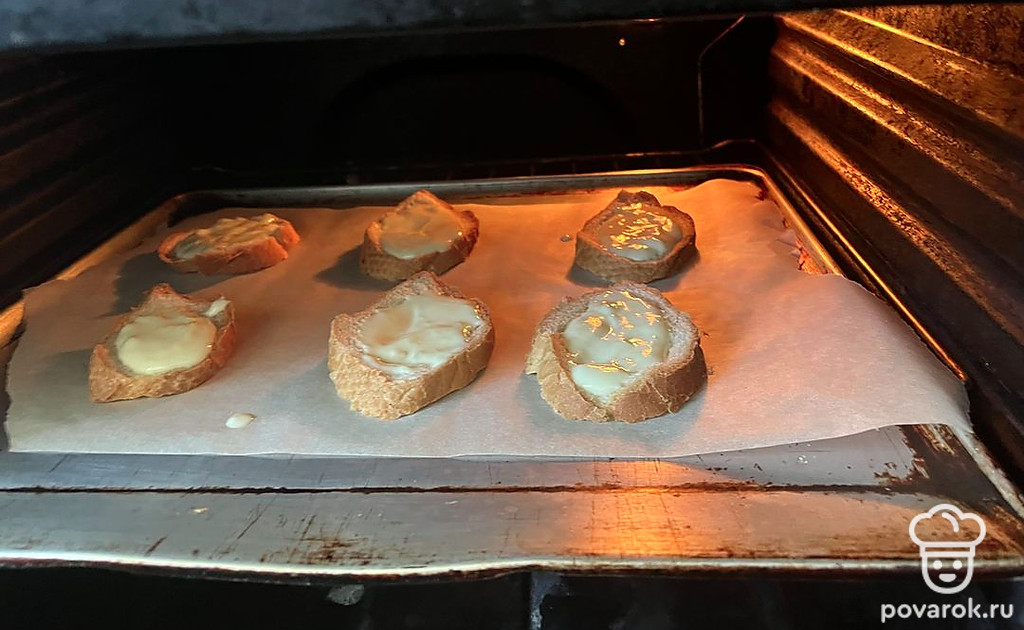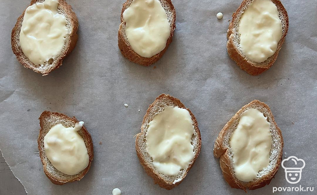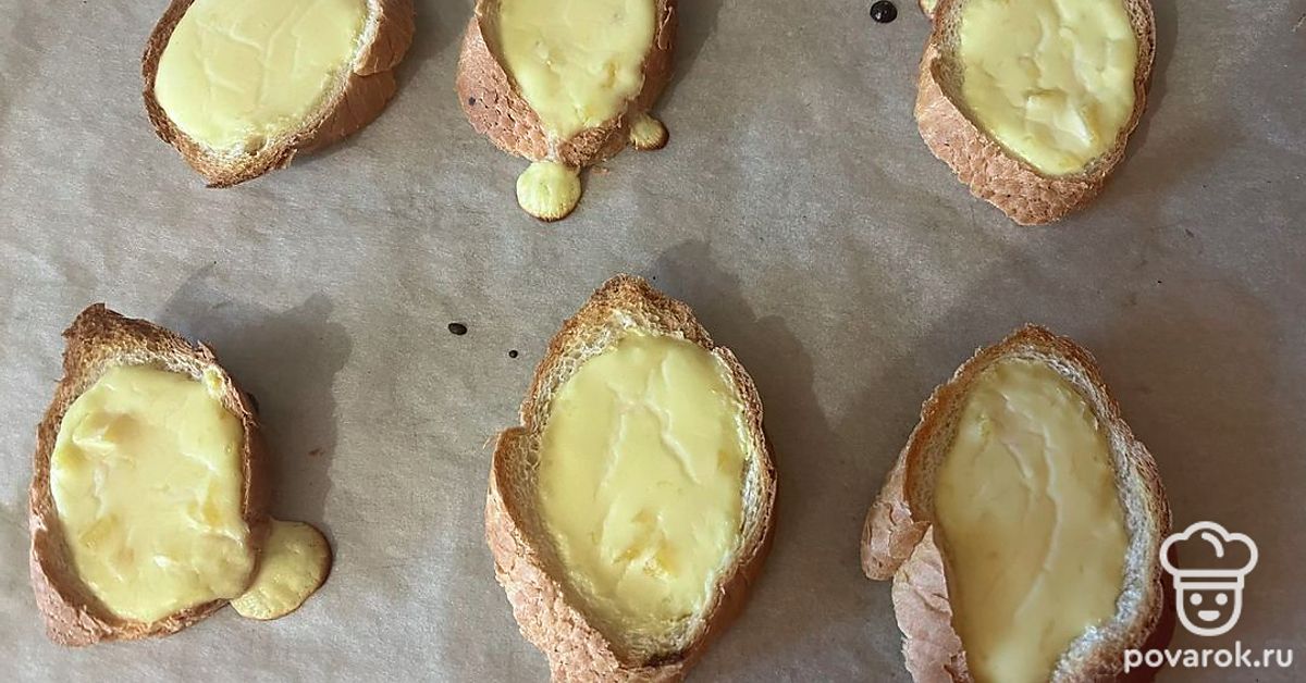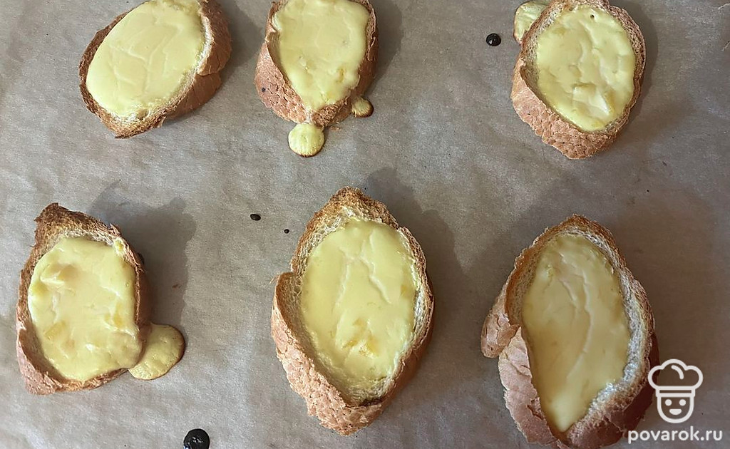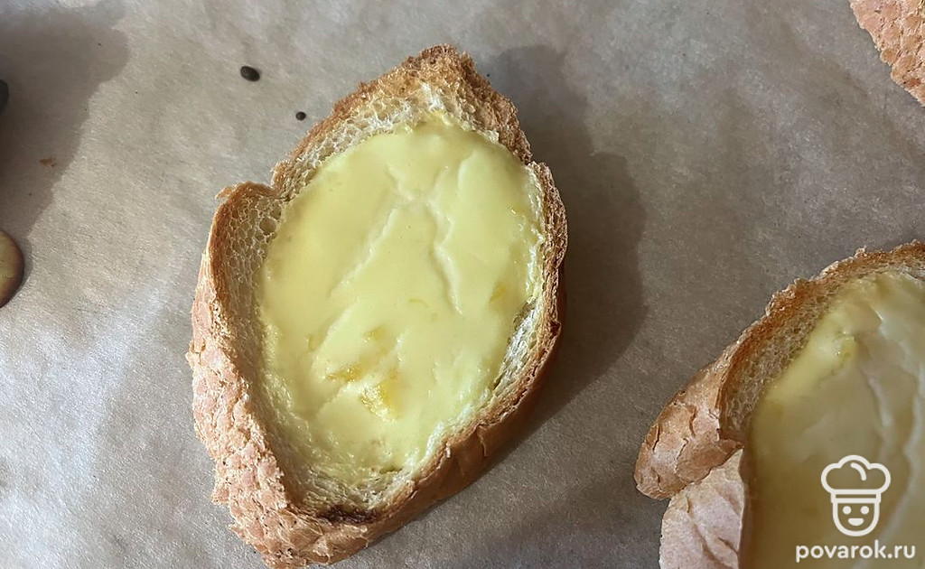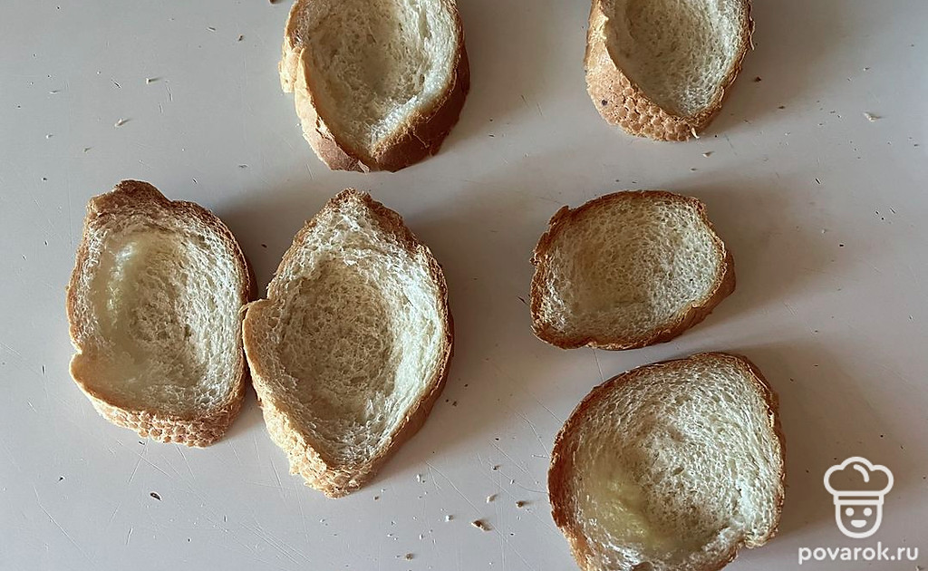 В каждом ломтике хлеба сделайте углубление при помощи столовой ложки, как показано на фото.