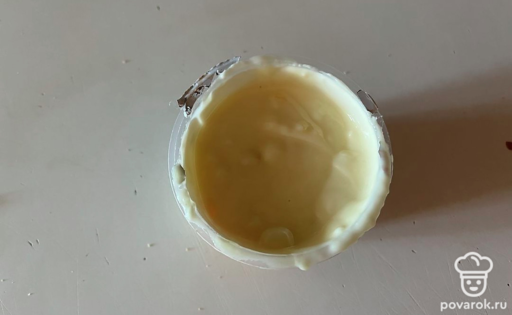 На застеленную пергаментной бумагой форму выложите хлеб. В каждое углубление равномерно распределите начинку из йогурта и желтка.