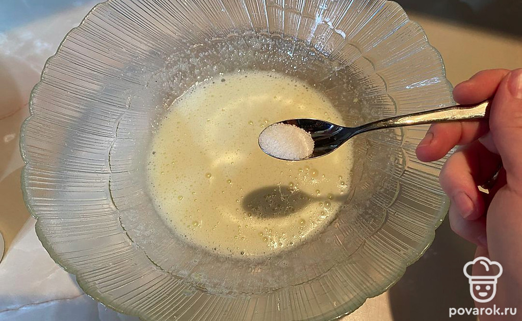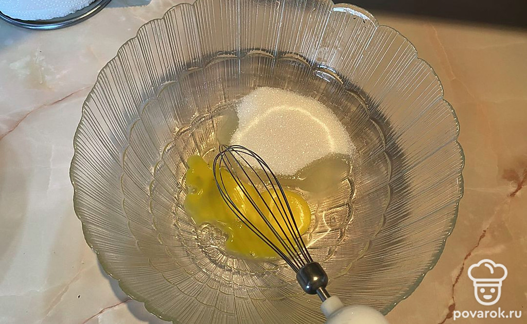 Смешайте сахар и яицо.