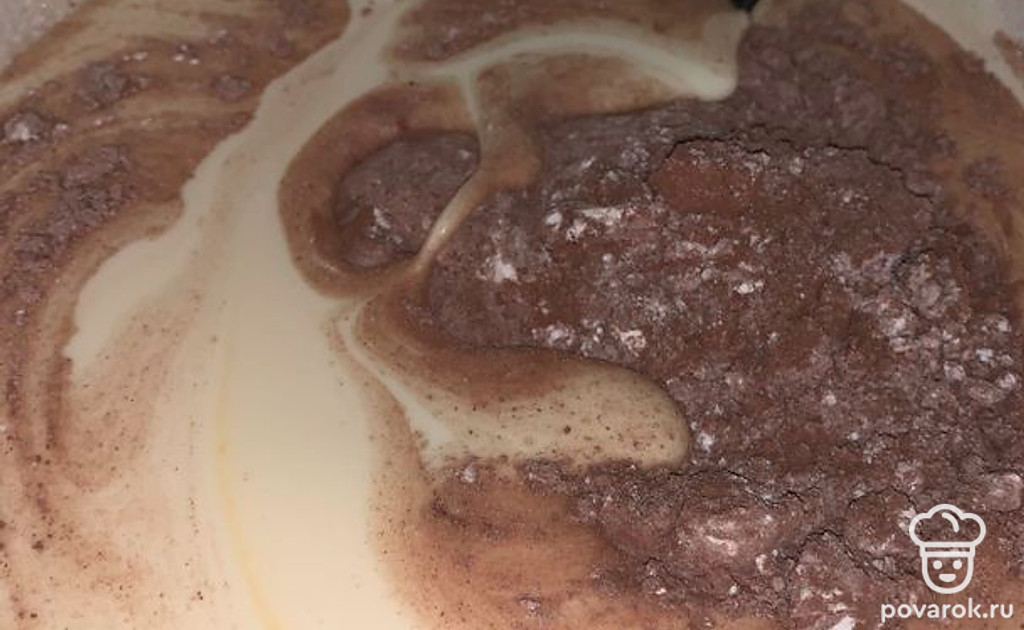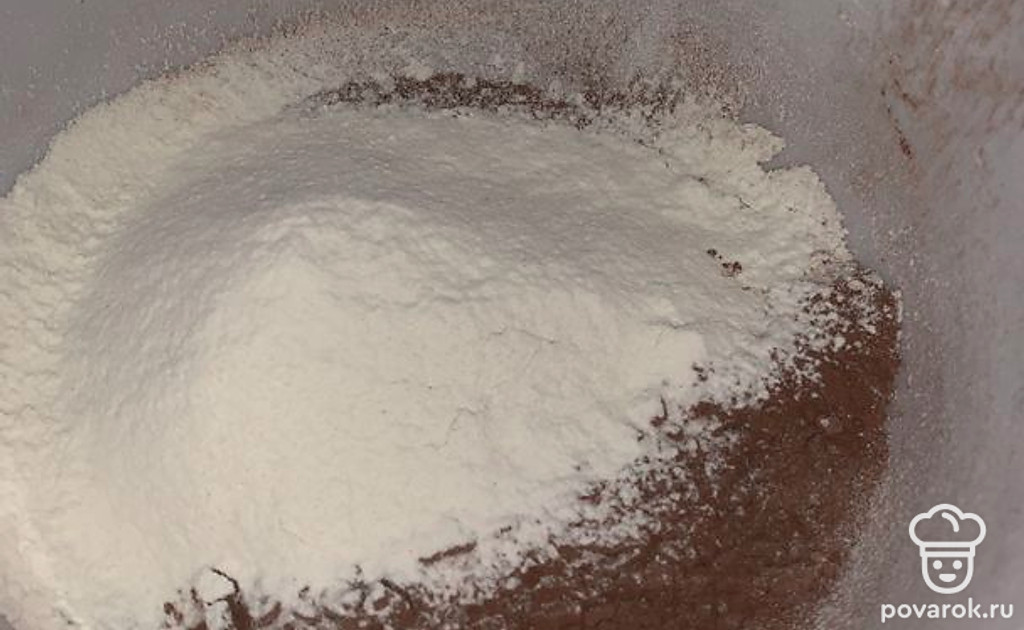 Муку с какао смешать.