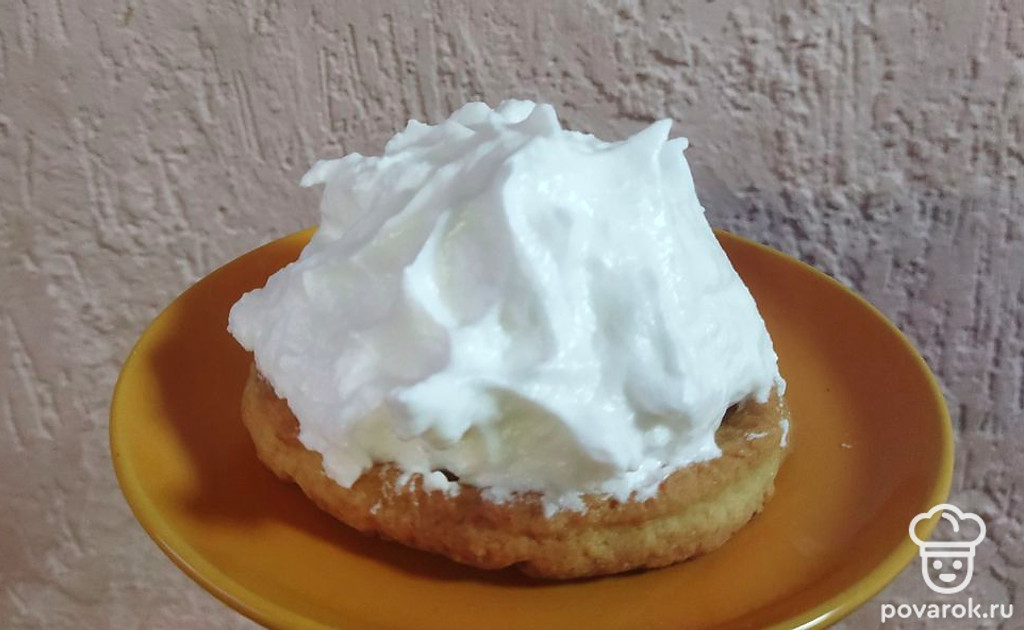 Достаньте из духовки готовое печенье, остудите и выложите сверху белковый крем.
