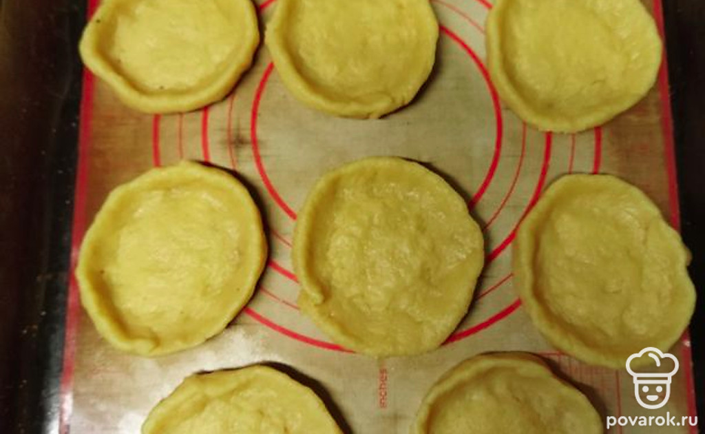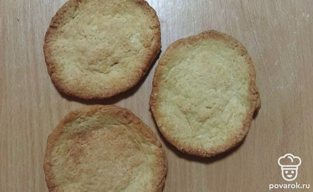 Из теста сформируйте тонкие коржики, сделайте несколько проколов вилкой и выпекайте 12 минут при температуре 180 °С.
