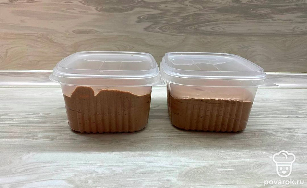 Как только масса увеличится в объеме и приобретает более густую кремовую консистенцию, переложите массу в контейнер и уберите в морозилку.