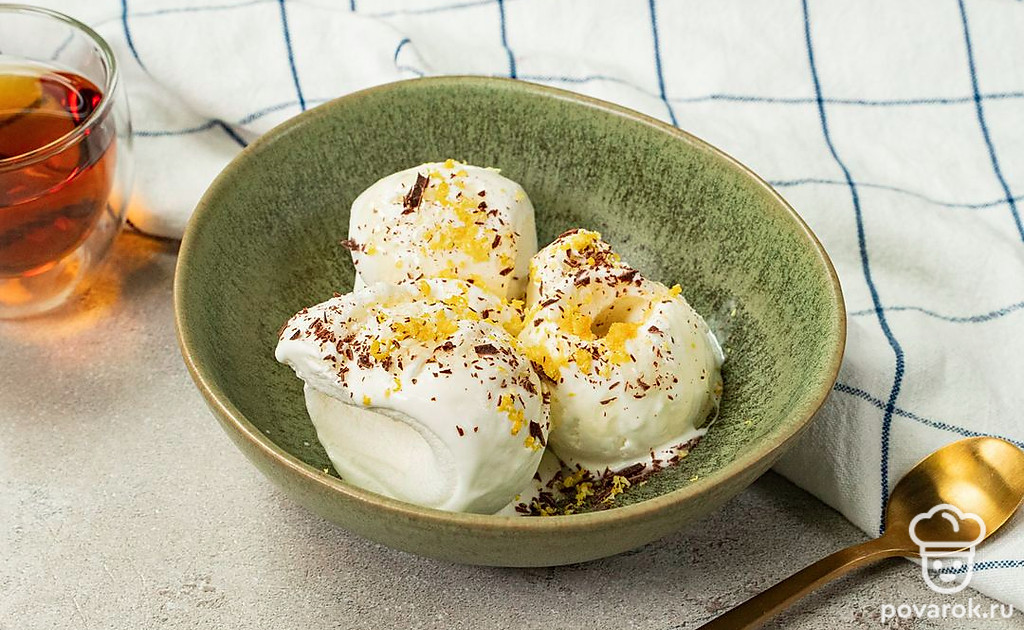 Мороженое в виде десерта появилось в конце XVIII века при дворе Екатерины II. Для него был необходим лед, дорогой и почти недоступный в теплое время, и позволить себе лакомство могли только обеспеченные люди. В конце XIX века появились мороженщики с холодильными ящиками, у которых можно было купить шарик клубничного, фисташкового или лимонного мороженого. Сегодня мороженое легко приготовить дома. Лимонное будет особенно вкусным, со сбалансированным кисло-сладким вкусом и нежной консистенцией.