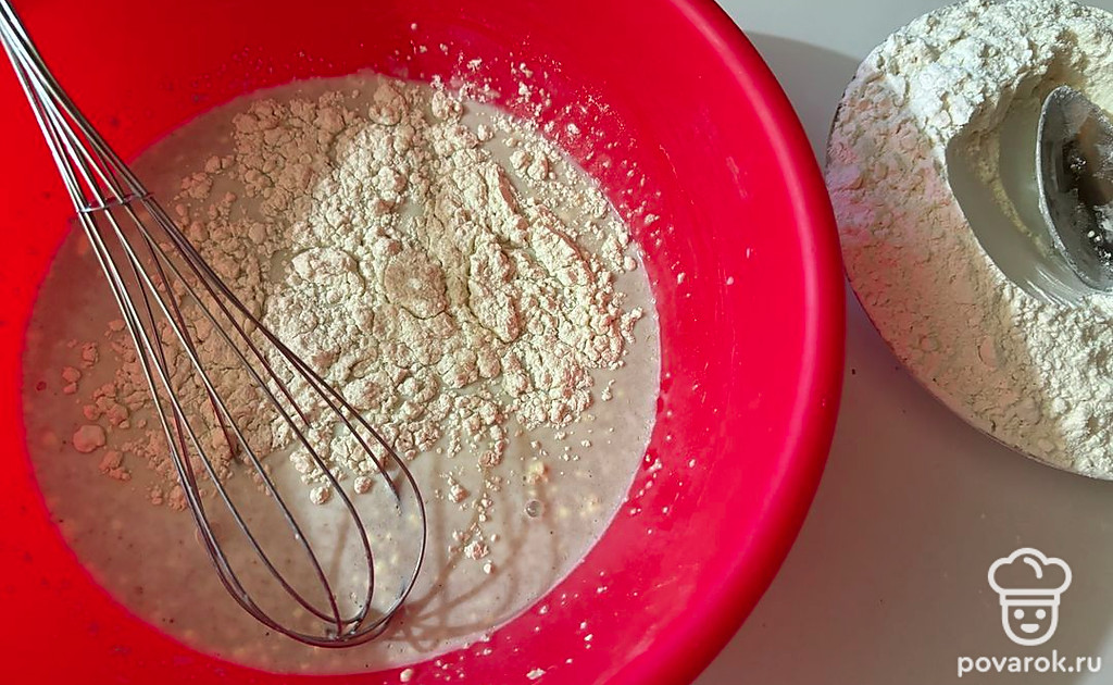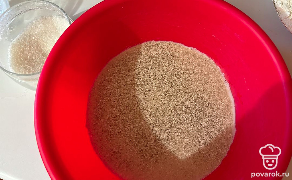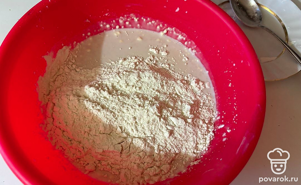К молоку добавьте одну столовую ложку муки, перемешайте. Опару оставьте на 10 минут.