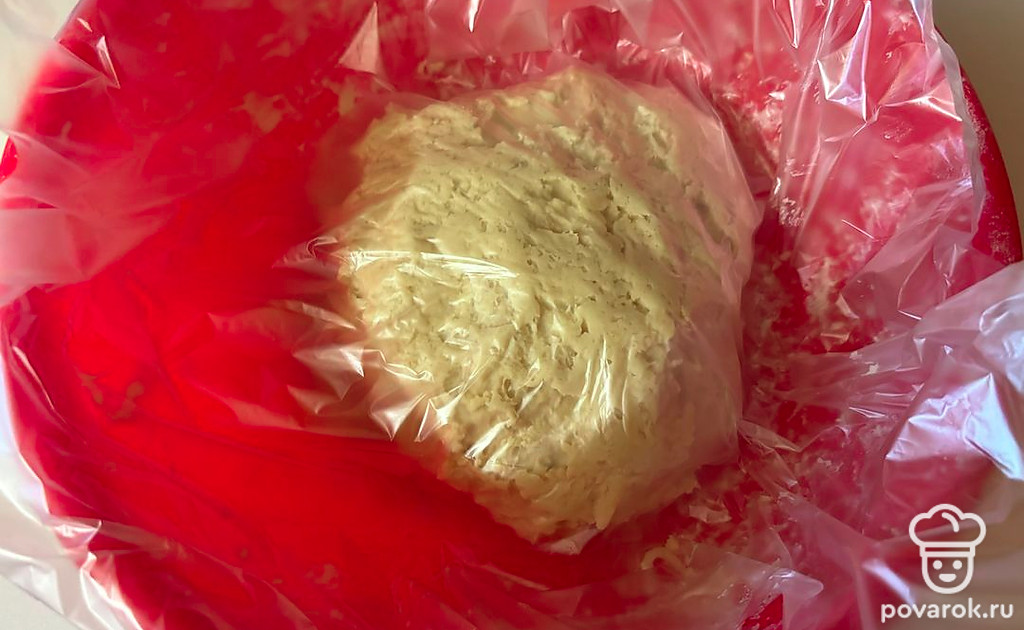 Накройте тесто пластиковым пакетом и оставьте в теплом месте на один час. Оно должно подняться.