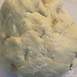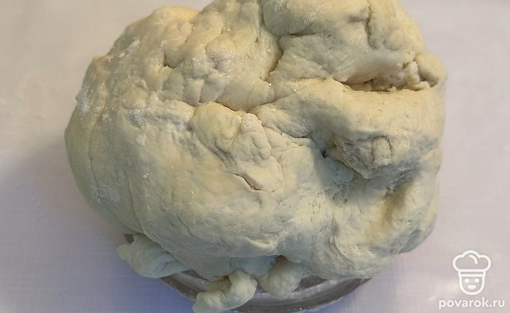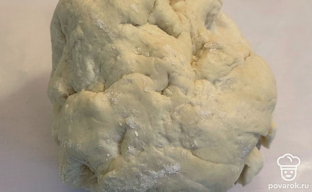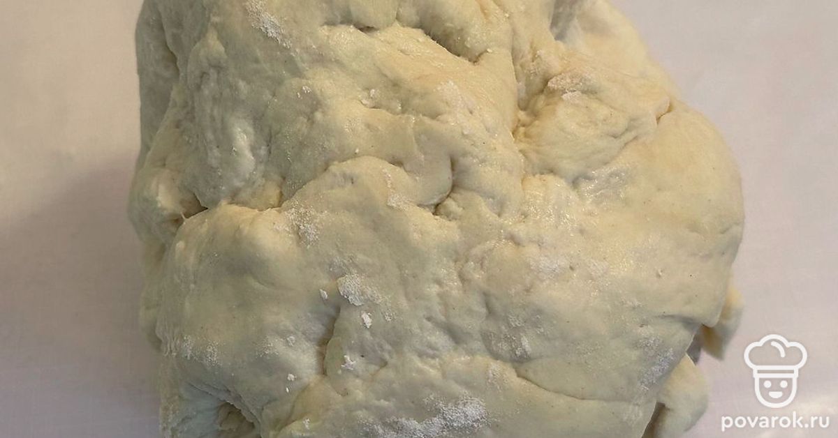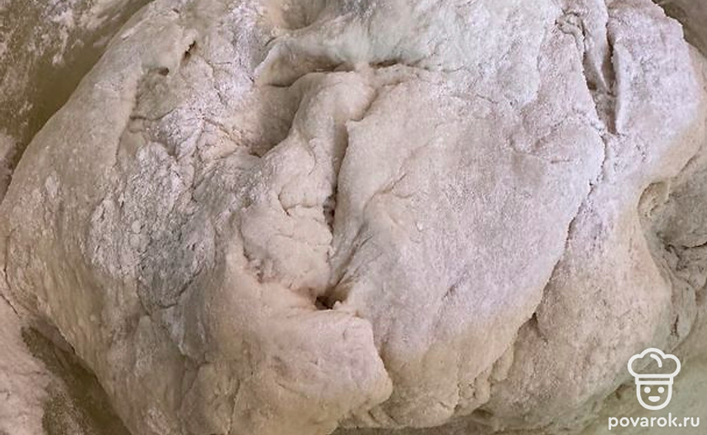 Через 20 минут высыпьте муки столько, чтобы можно было замесить густое тесто. Накройте полотенцем и уберите на 1 час 30 минут в теплое место.