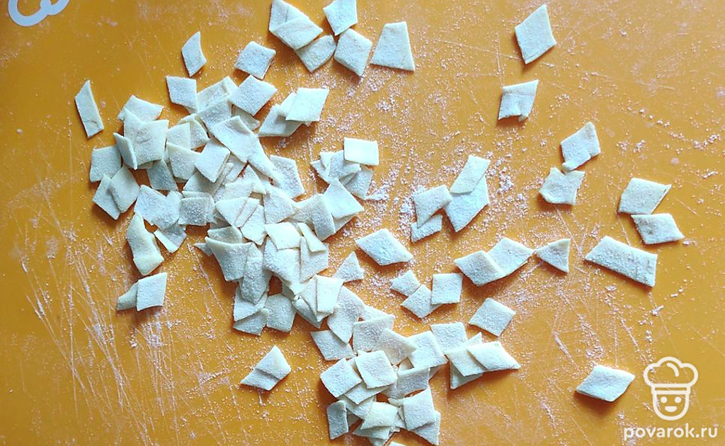 Можно нарезать лапшу ромбом. Готовую лапшу отправляем сушиться.