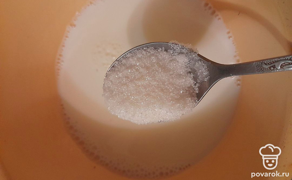 Добавьте в молоко соль и сахар.