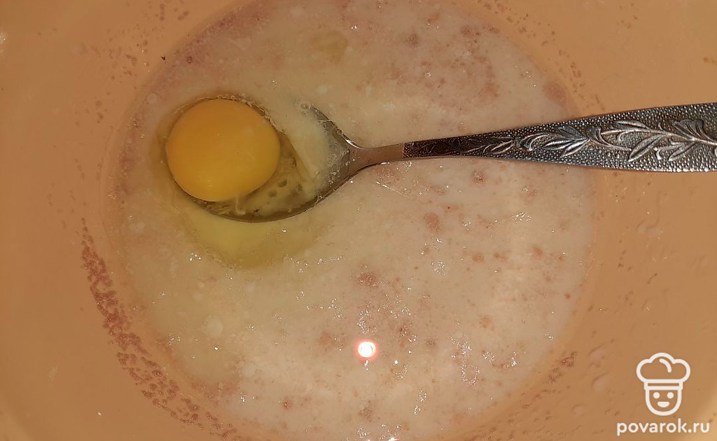 Добавьте яйцо и хорошо перемешайте.