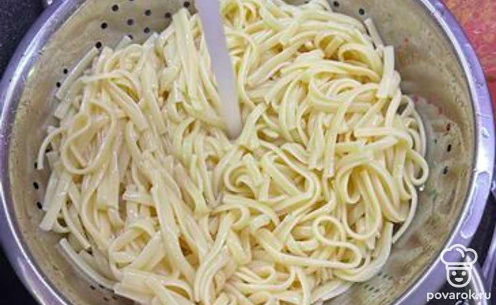 Отварить и промыть лапшу.