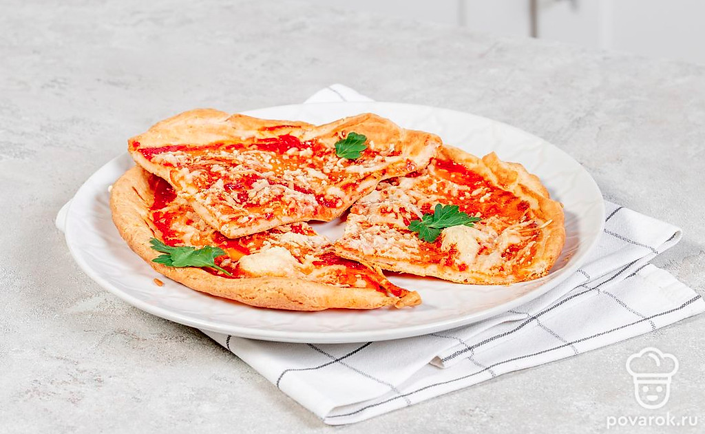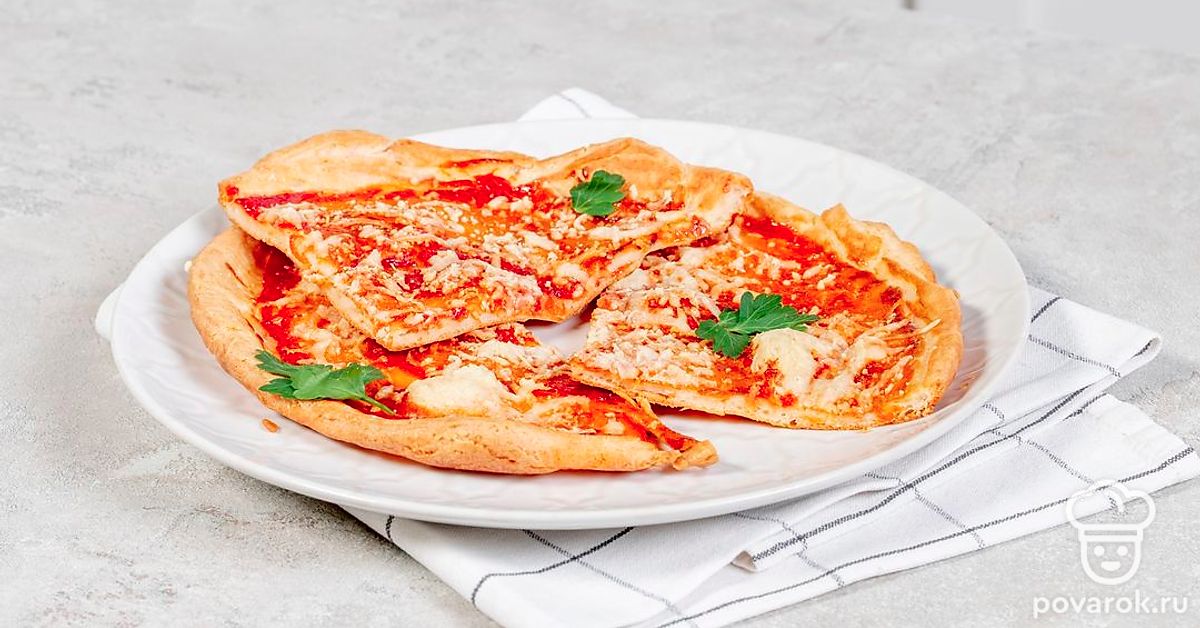 В этом рецепте покажем, как приготовить тесто для пиццы на сковороде. Форма сковороды поможет сделать ровный круглый корж, так что вам нужно будет отрегулировать только толщину теста. Потом на эту основу можно выложить начинку и отправить в духовку на 10 минут, чтобы получить вкусную пиццу.