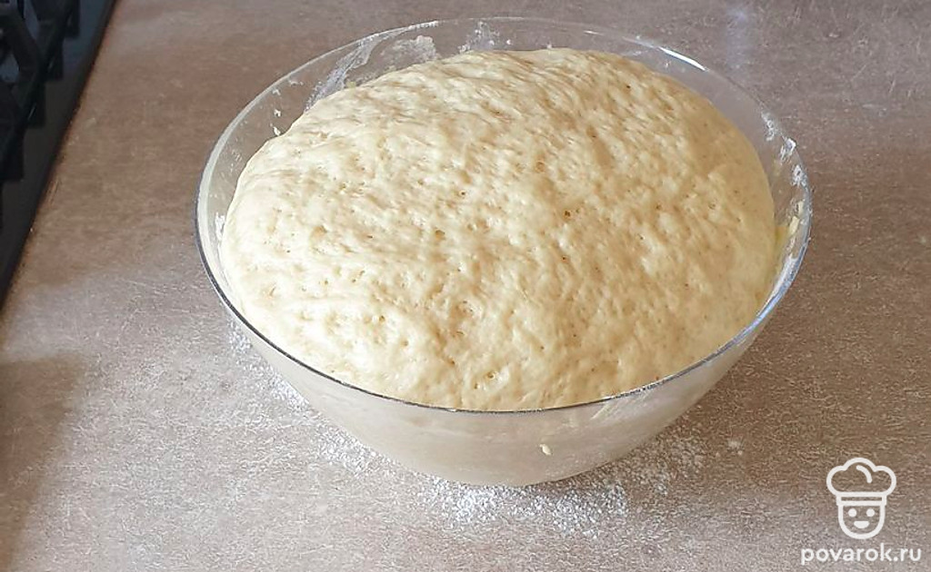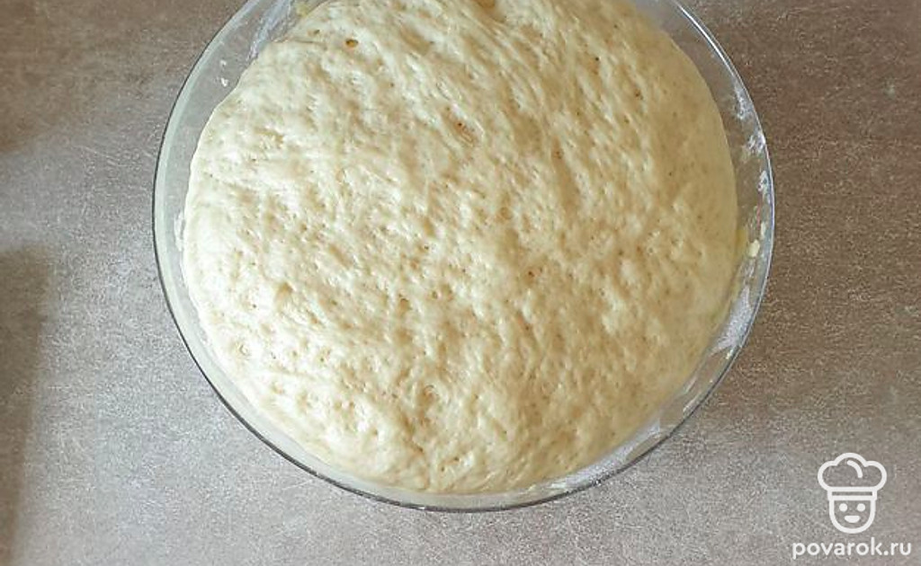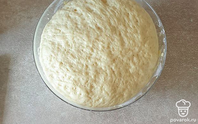 Замешивайте тесто около 5-7 минут. Положите в миску и поставьте в выключенный духовой шкаф. Предварительно на дно духовки поставьте миску с кипятком. Дайте постоять тесту около 60 минут. Достаньте, обомните и начинайте готовить.