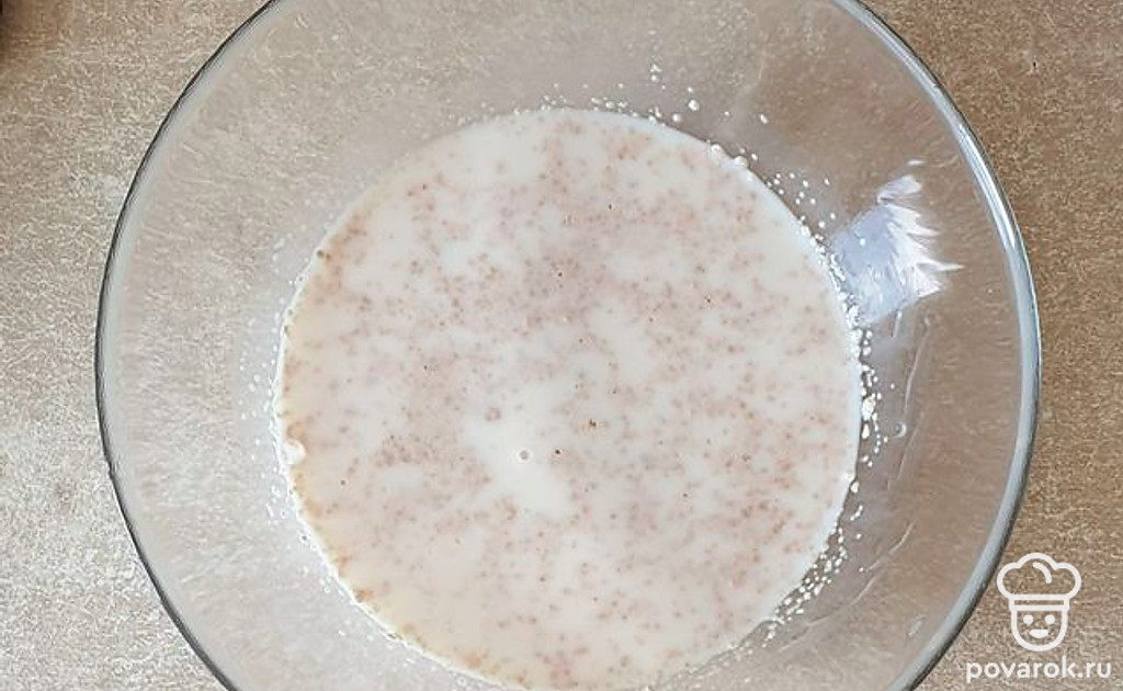 Молоко немного подогрейте до теплого, но не горячего состояния. Добавьте к нему сахар и дрожжи. Перемешайте и оставьте до образования пенной шапочки.