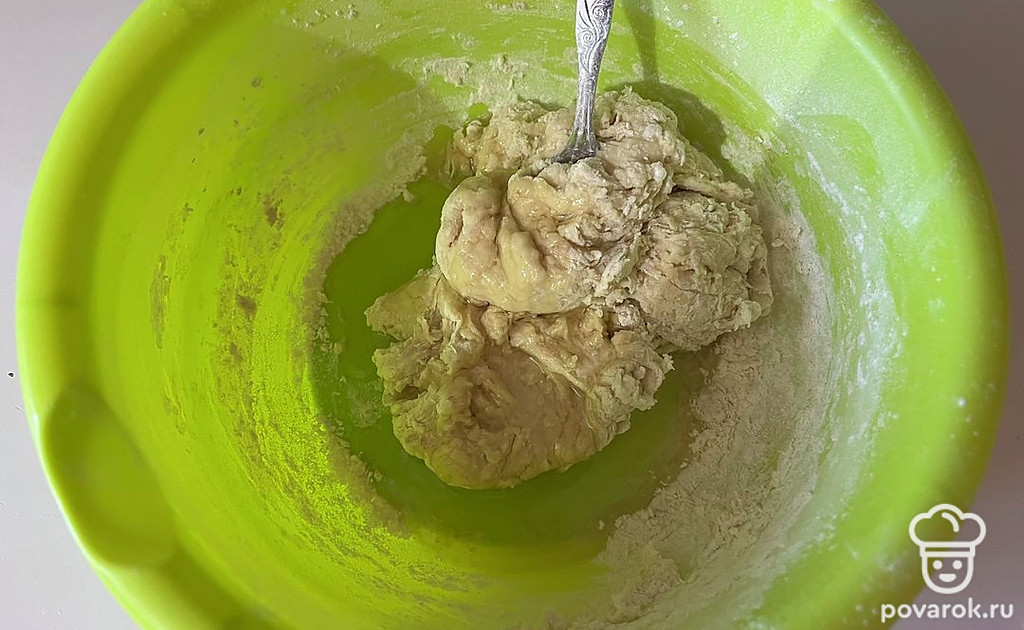 Постепенно добавляя растительное масло, замесийте однородное гладкое тесто.