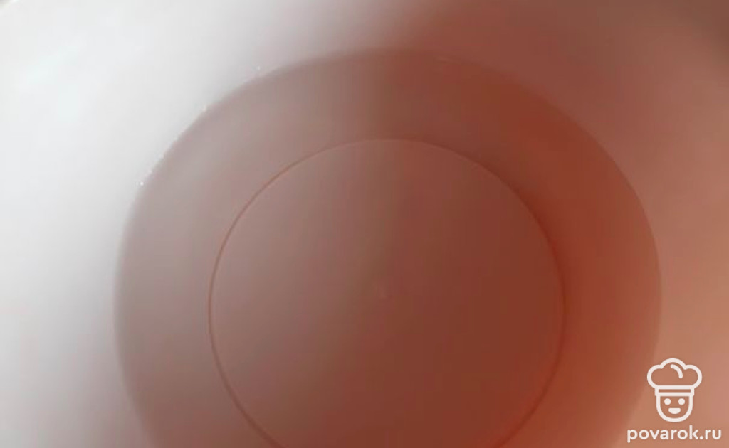 1 стакан теплой кипяченой воды, перелить в миску, где будет замешиваться тесто.
