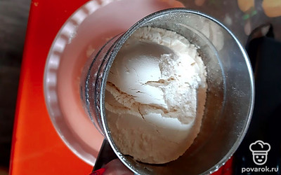Муку просеять через сито и постепенно добавлять к воде.