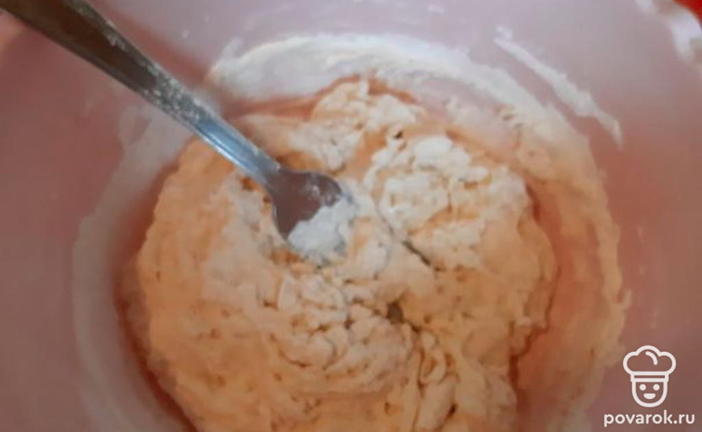 Замесить тесто вилкой.