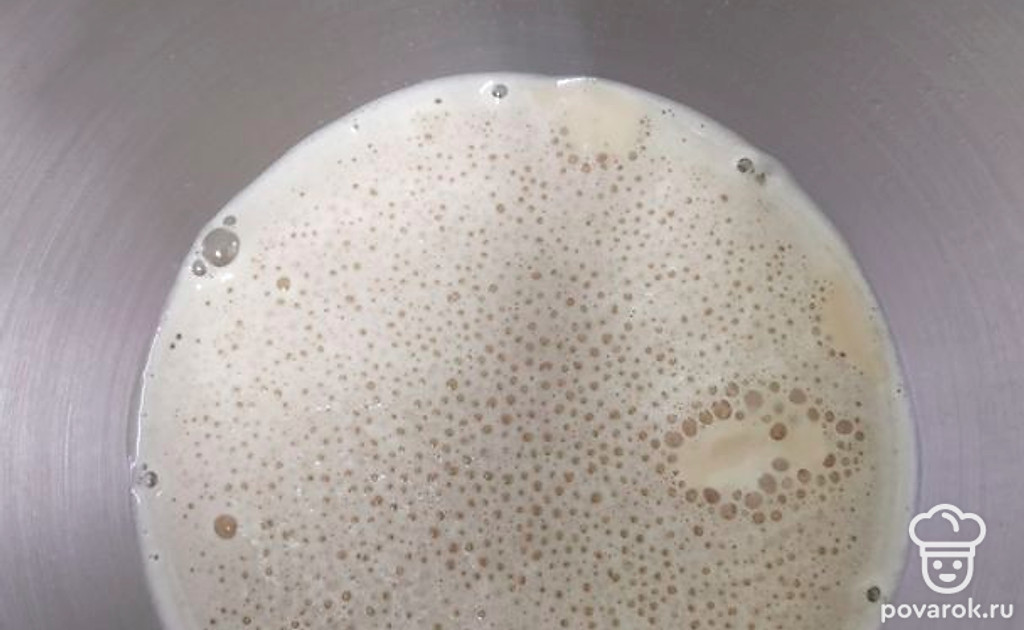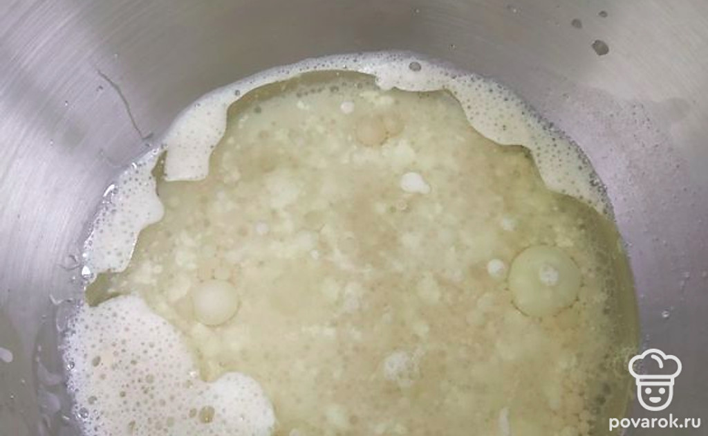 Дрожжи разводим в небольшом количестве теплой воды. Даем им постоять, чтобы они начали работать.