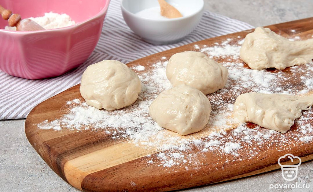 Приготовьте вытяжное тесто. Разделите тесто на шарики, напоминающие по размеру теннисные мячи. Раскатайте каждый из них. Равномерно растягивайте тесто во все стороны. Если нужно, присыпьте мукой. Накройте раскатанное тесто влажным полотенцем и оставьте его на 5 минут. Снова раскатайте или растяните руками, чтобы оно стало тончайшим. Будьте осторожны, не порвите тесто.