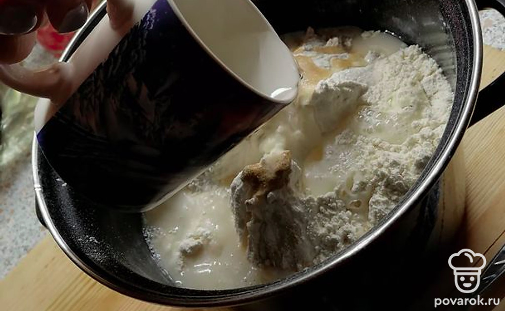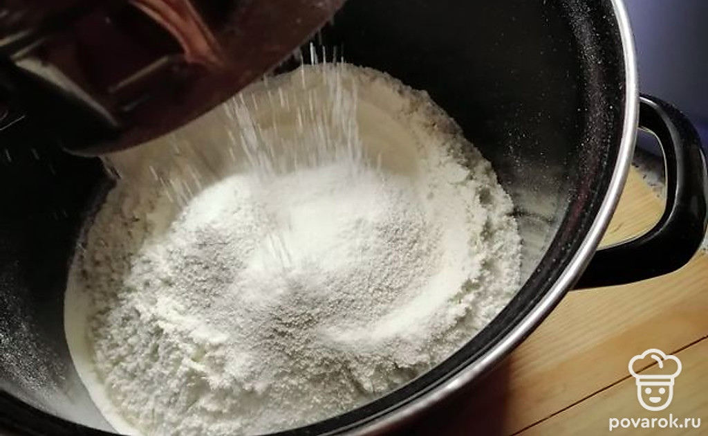 Добавьте сахар, соль, дрожжи.