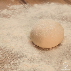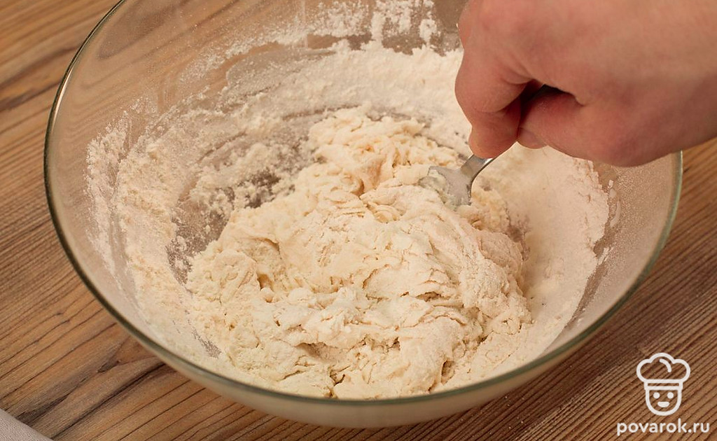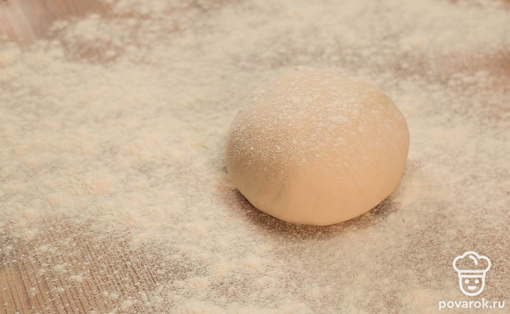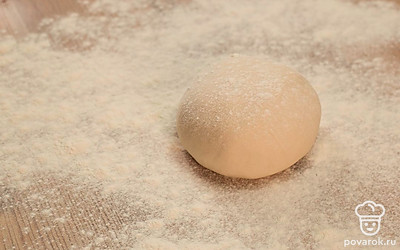 Выложите тесто на стол, присыпанный мукой, и вымешивайте до однородности.