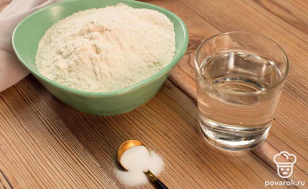 В глубокую миску просейте муку и добавьте соль. Понемногу добавляйте воды и замешивайте тесто. Сначала замешивайте вилкой, затем руками.