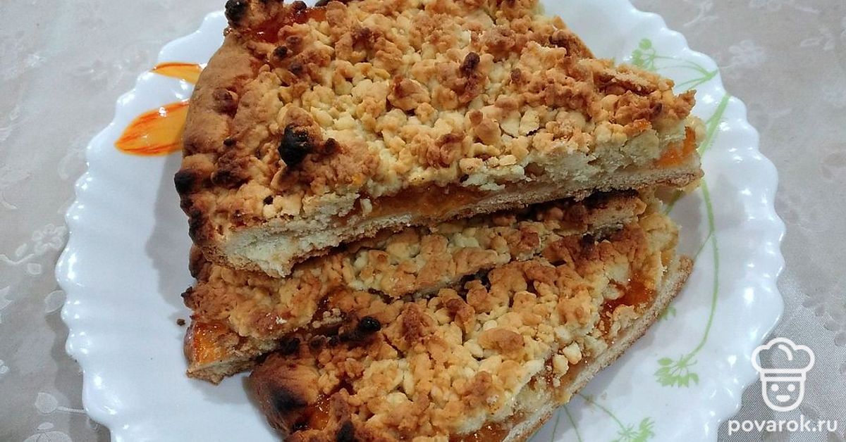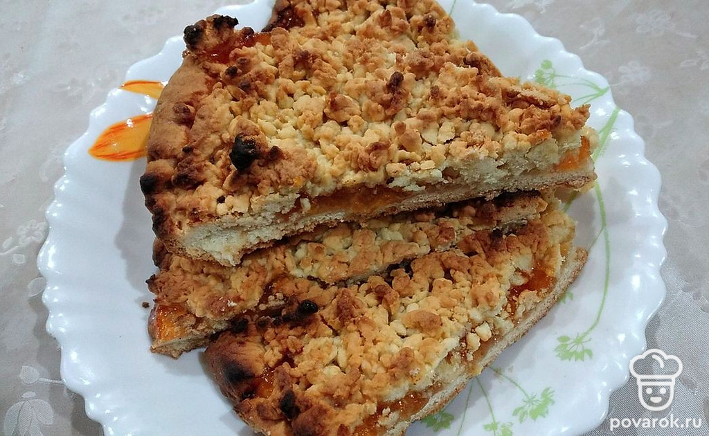 Пирог из мягкого песочного теста. Джем добавляет выпечке особый вкус. Пирог выглядит красиво и оригинально.