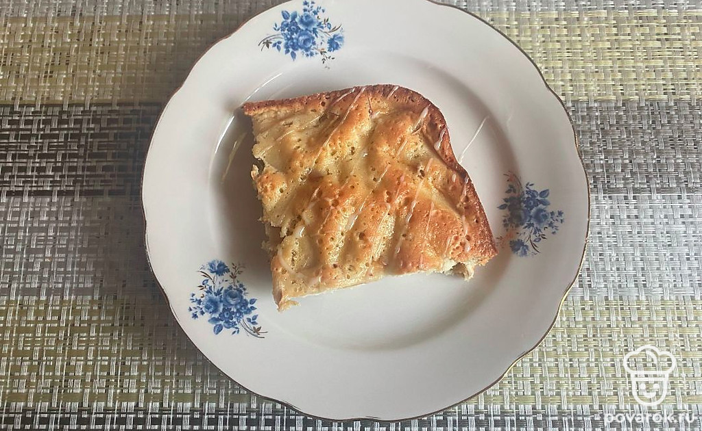 Подавайте пирог порционно. Его можно сделать еще слаще, полив сгущенкой.