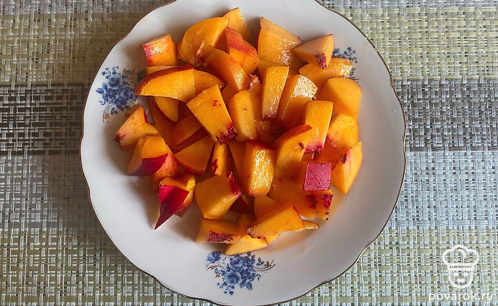 Нарежьте нектарин мелкими кусочками. Можете измельчить прямо с кожицей.