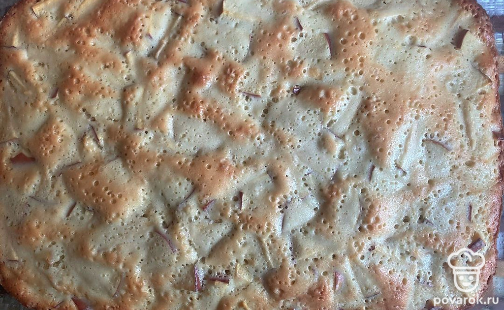 Нежный, аппетитный и ароматный пирог из фруктов. Готовится он совсем просто и быстро. Нужно лишь только смешать ингредиенты и убрать блюдо с тестом в духовку.