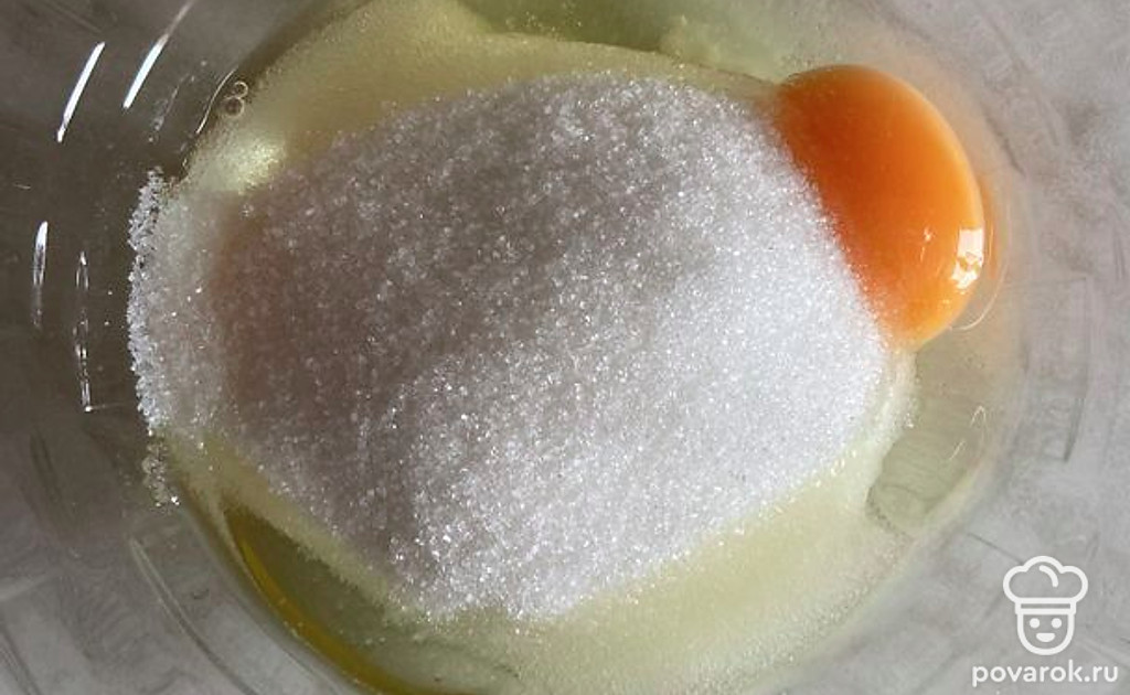 Яйца смешайте с сахаром.