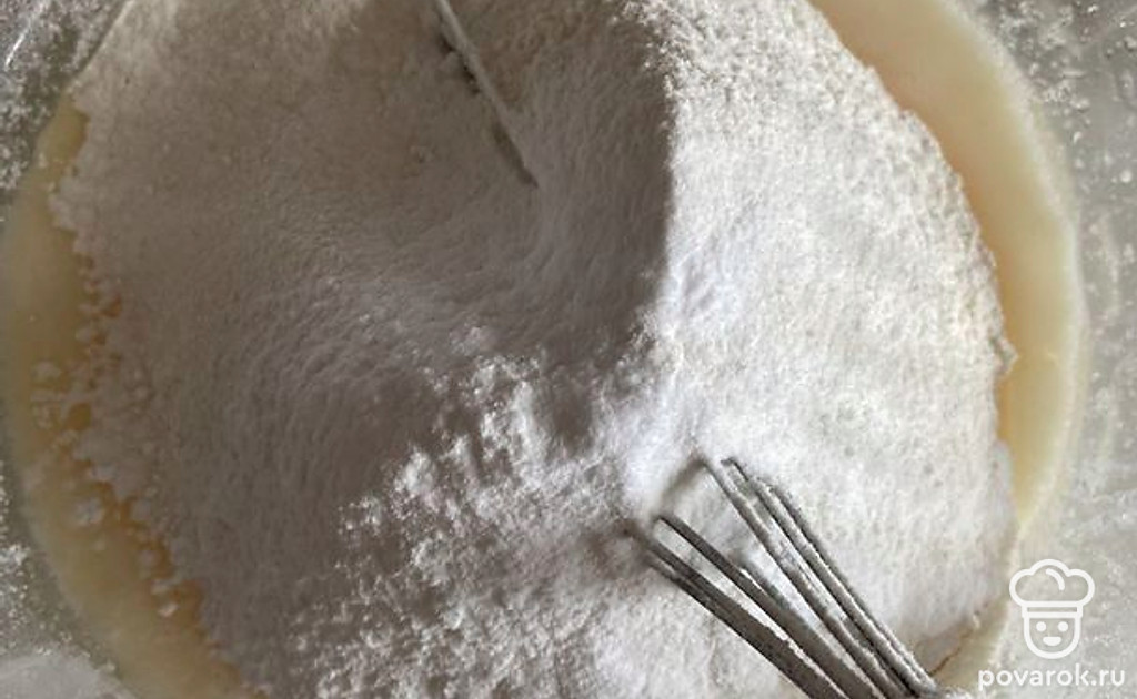 Просейте муку и разрыхлитель, добавьте ванилин. Тщательно перемешайте.