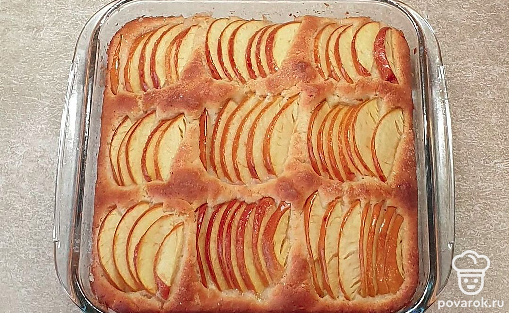 Пирог слегка остудите. Подавайте, разрезав на порционные кусочки. Приятного аппетита!