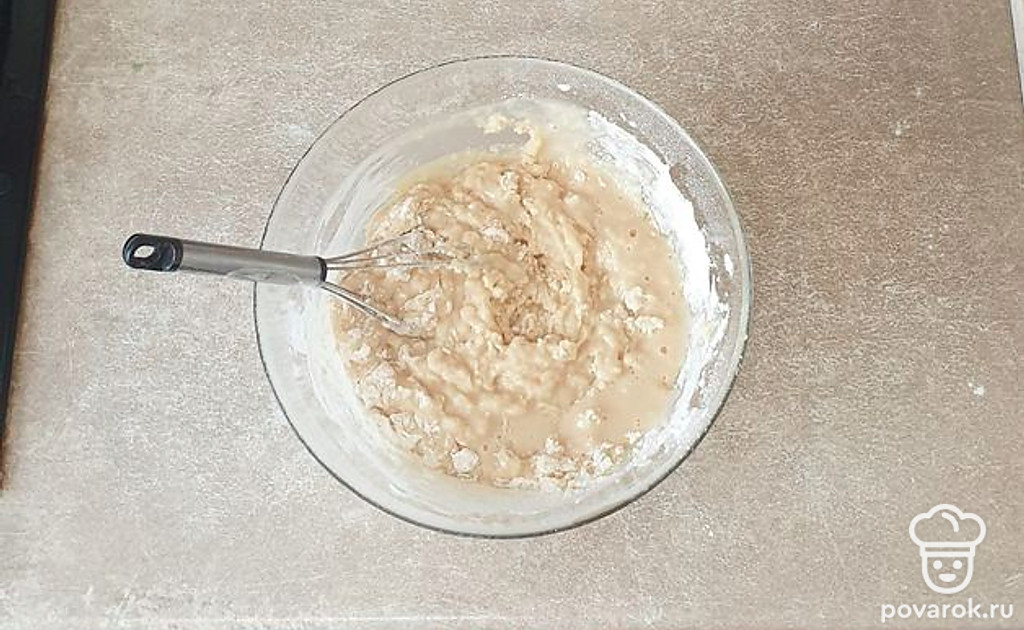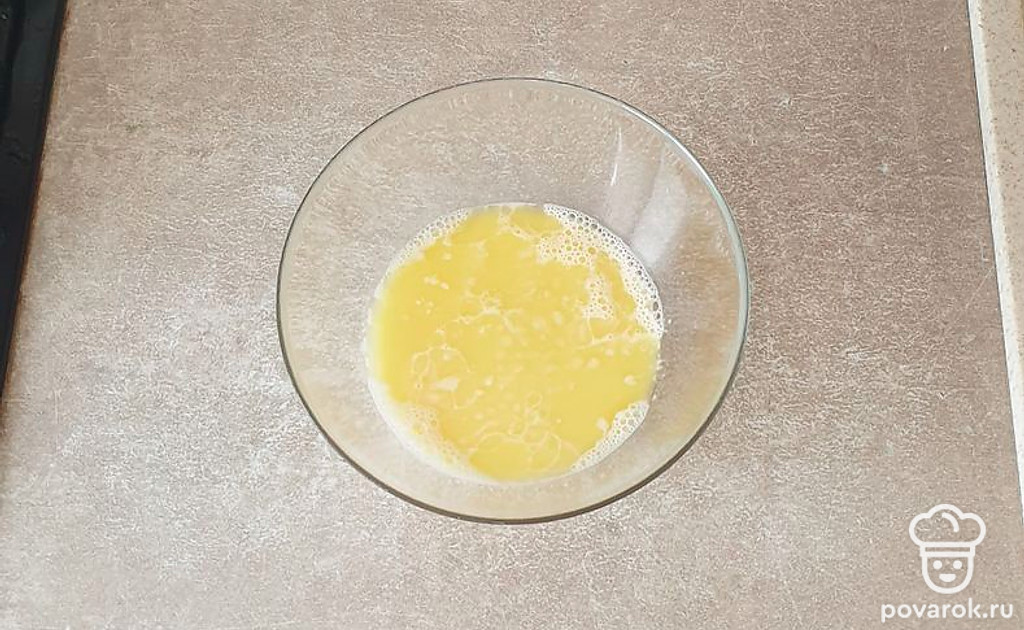 Сливочное масло растопите, слегка остудите и влейте в миску.