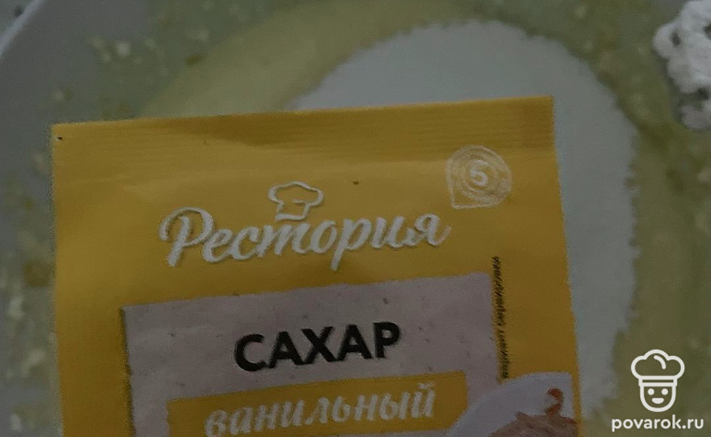 Всыпьте сахар, вбейте яйца. Перемешайте миксером.